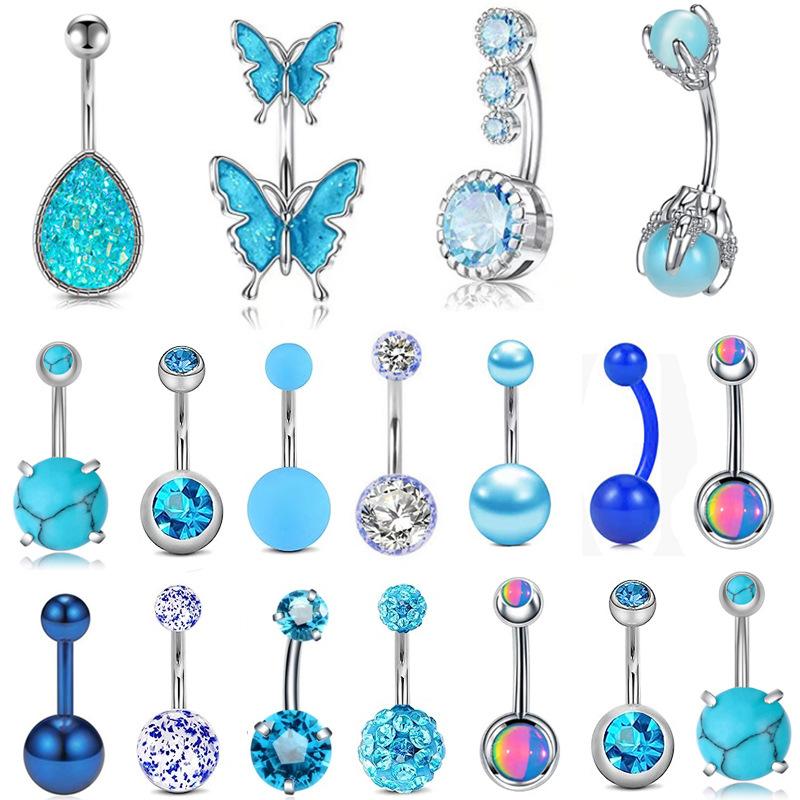 Синяя серия из нержавеющей стали, кольцо для пупка, поры тела, через пупок, ногти, 18-в-одном, ювелирные изделия с пряжкой для пупка