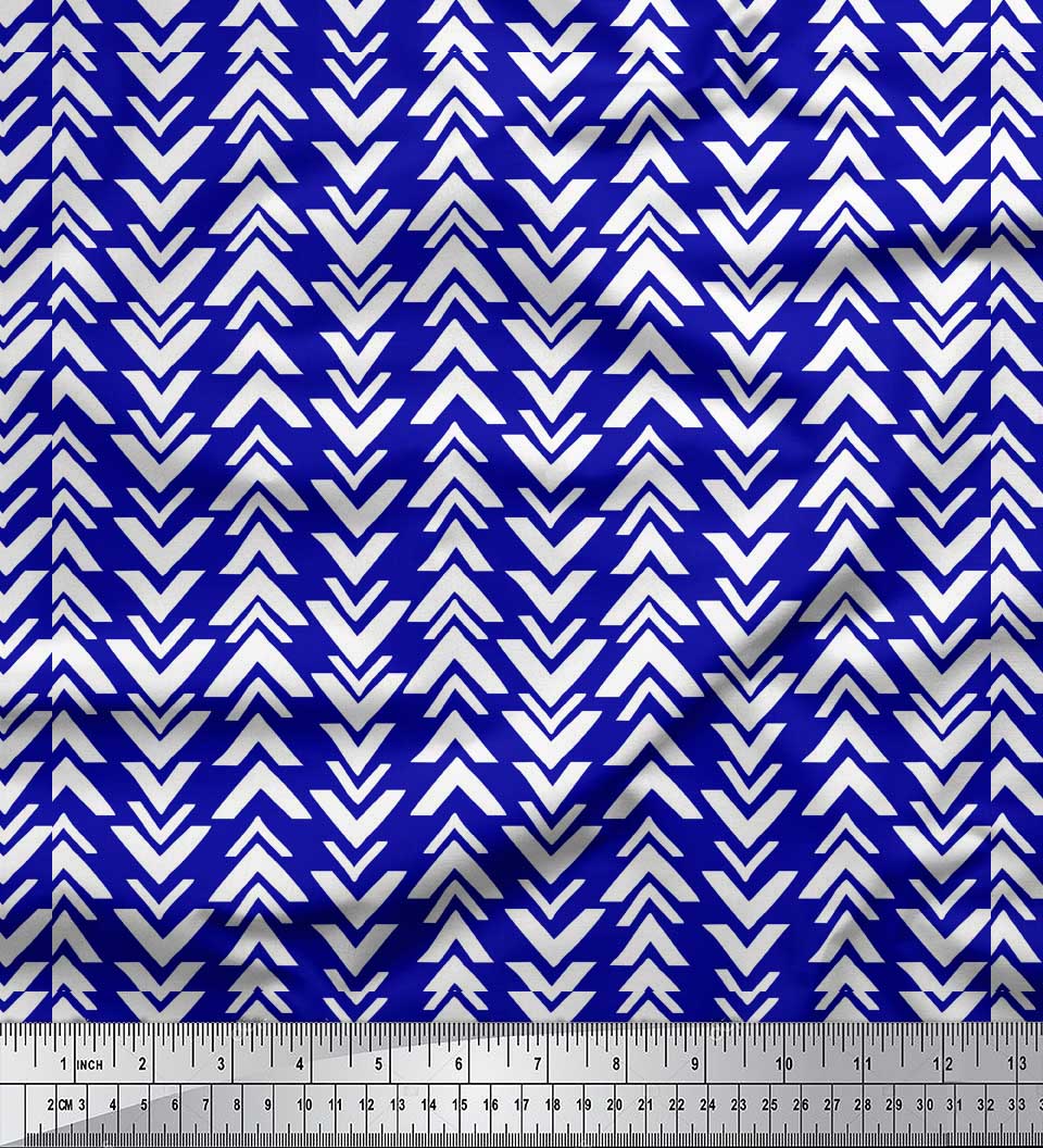 Синяя японская креп-сатиновая ткань Soimoi, геометрическая стрелка, этнический принт, ткань по метрам, 42 дюйма 42 Inch Wide - Poly Crepe синий