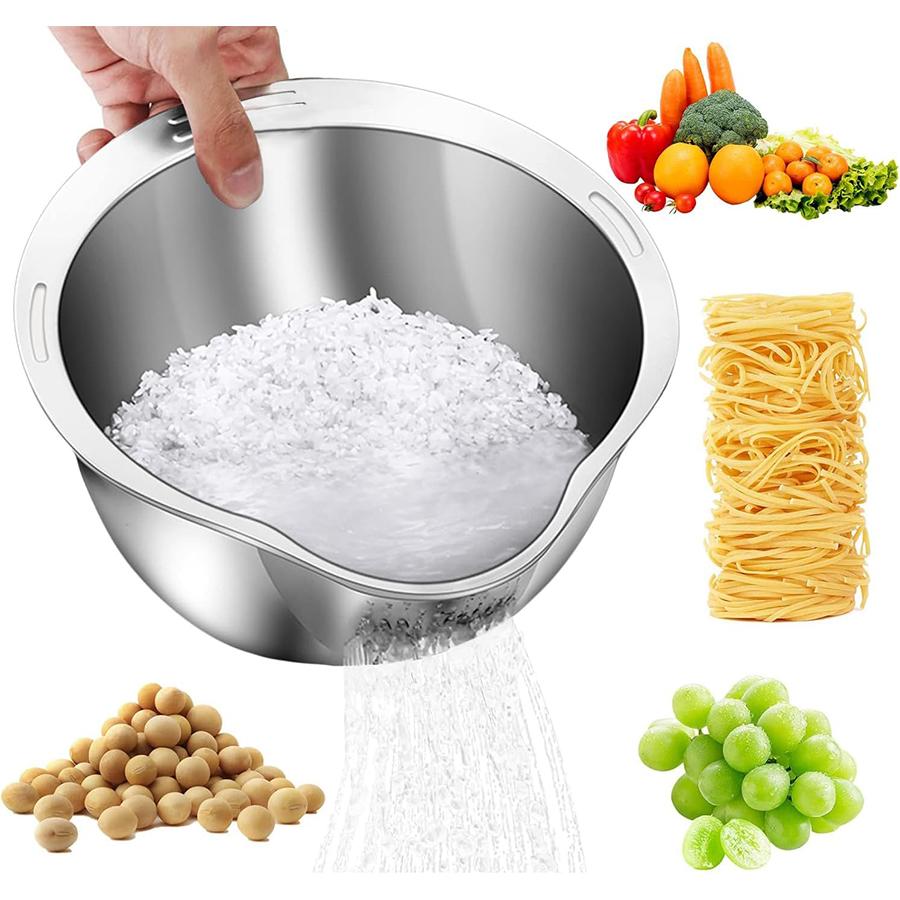 Ситечко для мойки риса, чаша из нержавеющей стали для ополаскивания киноа, боковые сливы, дуршлаг для очистки фруктов, овощей и бобов