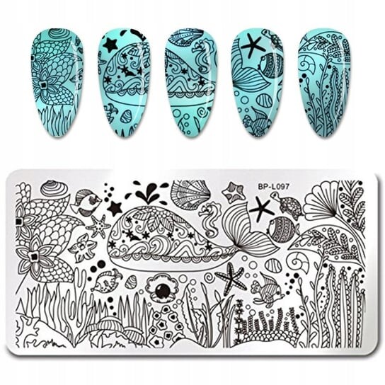 Пластина Штемпельная для узоров для украшения ногтей МОРЕ ОКЕАН ВОДА РЫБКИ, Frezarkowo