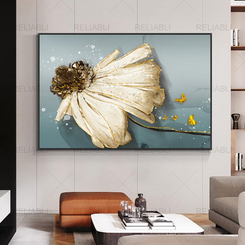 Скандинавская абстрактная цветочная картина, холст, картина, роскошный золотой цветок, современные постеры и принты, настенная картина для галереи, домашний декор, без рамки