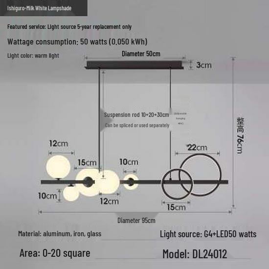 Скандинавская современная минималистичная люстра - Креативный светильник для столовой со стеклянными пузырьками Волшебные бобы . Neutral Light