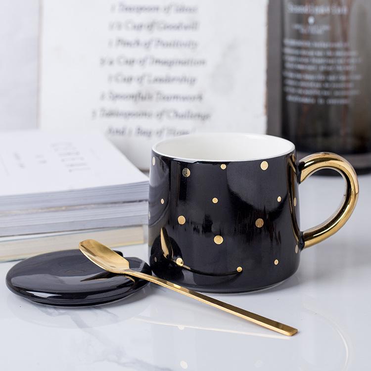 Скандинавская черно-белая креативная керамическая чашка с крышкой, геометрическая офисная кофейная чашка, чашка для питьевой воды с высоким внешним видом 301-400ml
