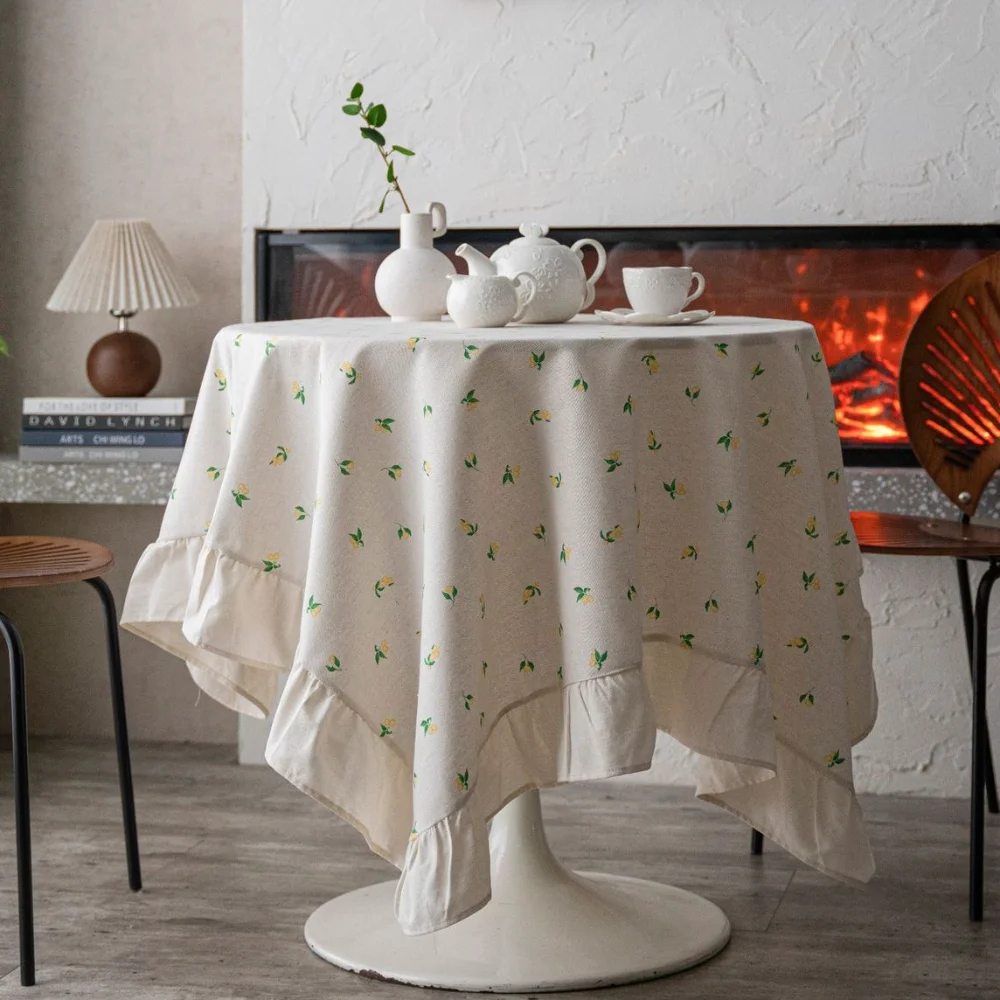 Скатерть в американском стиле, прямоугольная льняная мини-скатерть с принтом лимона и оборками для украшения стола, праздничная ткань для с...