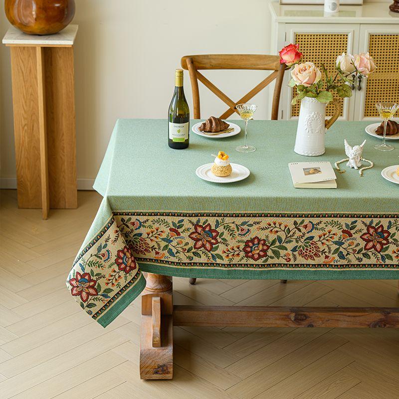 Скатерть в марокканском стиле из хлопково-льняной жаккардовой ткани, скатерть для стола в стиле американской кантри, ретро, прямоугольная накидка, утолщенная Fanying-Green 90*140cm