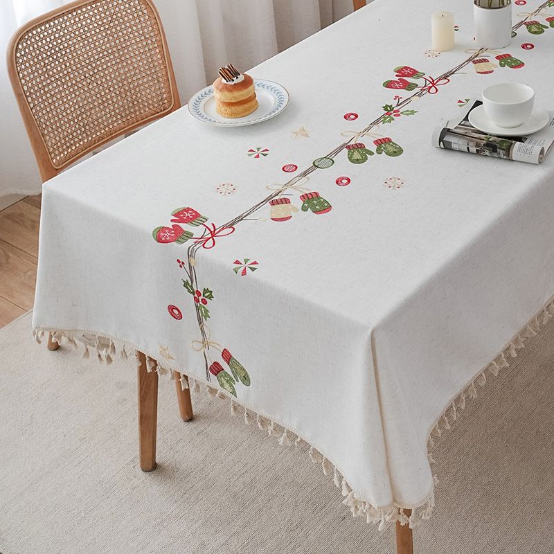 Скатерть для обеденного стола Скатерть Ткань Пасторальный Хлопок и Лен Вышивка Скатерть для кофейного столика Доступная Роскошь Прямоугольная Накидка Полотенце Лен Warm Winter-Red-Tassel 140*140cm (generous table)