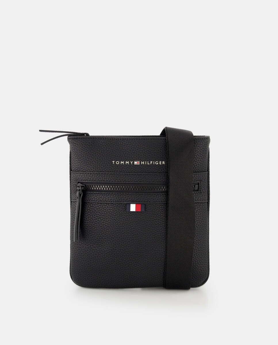 Маленькая черная сумка через плечо с передним карманом и логотипом Tommy Hilfiger, черный