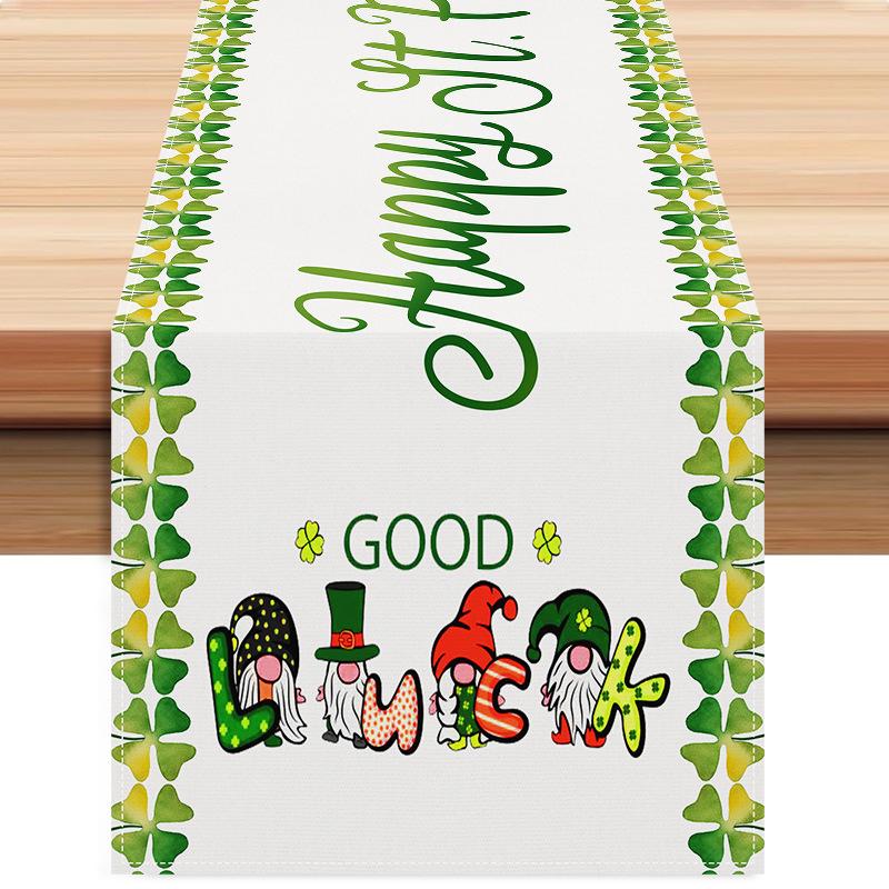 Скатерть-дорожка Гном с четырехлистным клевером - Ст. Украшение для вечеринки в честь Дня Святого Патрика, Льняная скатерть-мат 33x183cm (Linen)