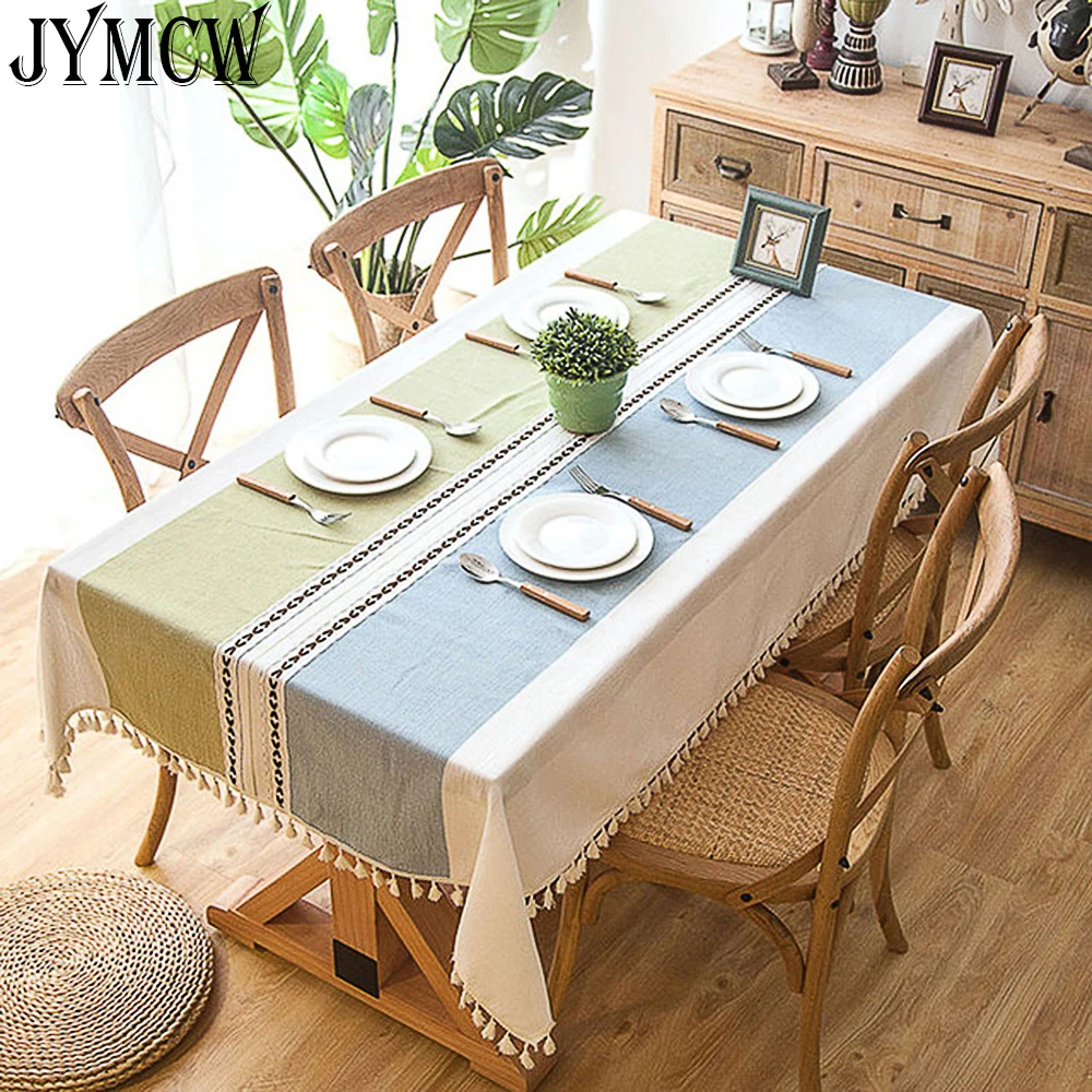 Скатерть льняная в клетку, декоративная Водонепроницаемая плотная скатерть овальной формы с кисточками, для свадьбы, столовой, чая, гостиной, дома