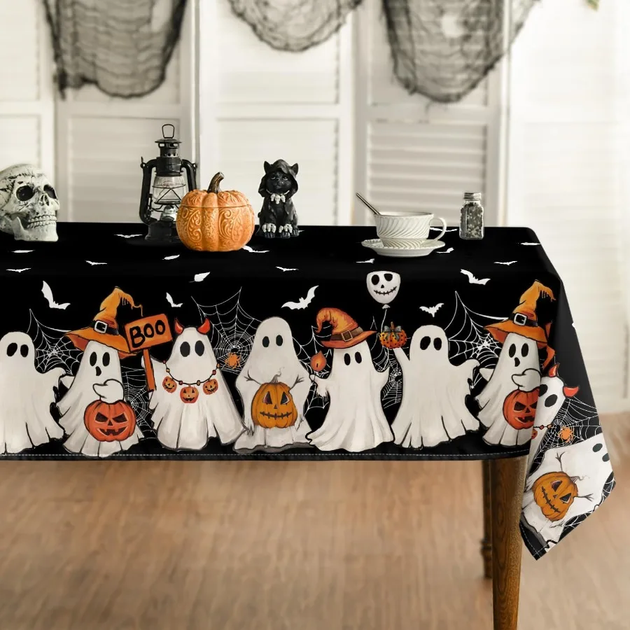 Скатерть на Хэллоуин 60 × 84 Ih, прямоугольная черная летучая мышь, призрак, тыква, паутина, моющийся сезонный чехол для стола для вечеринки, пикника Di
