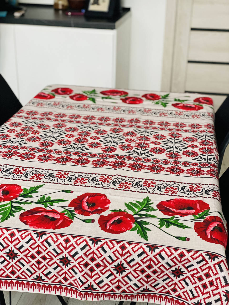Скатерть на стол льняная « Красные маки» Размер 1.5*1.1 м.