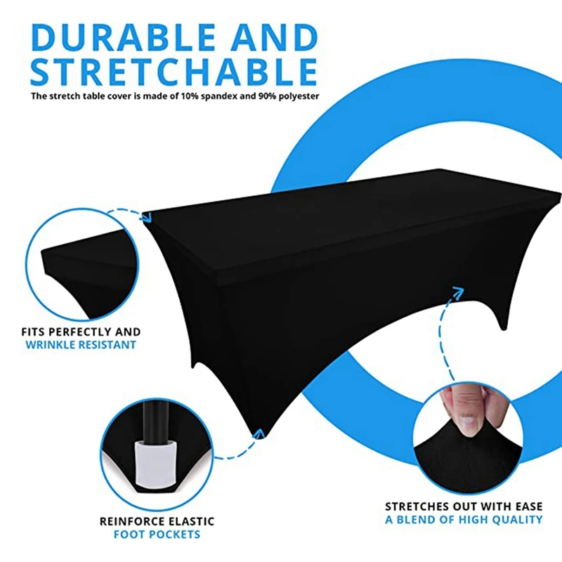 Скатерть плотная, прилегающая, моющаяся и немнущаяся, растягивающаяся прямоугольная из черного полиэстера, 2 шт.