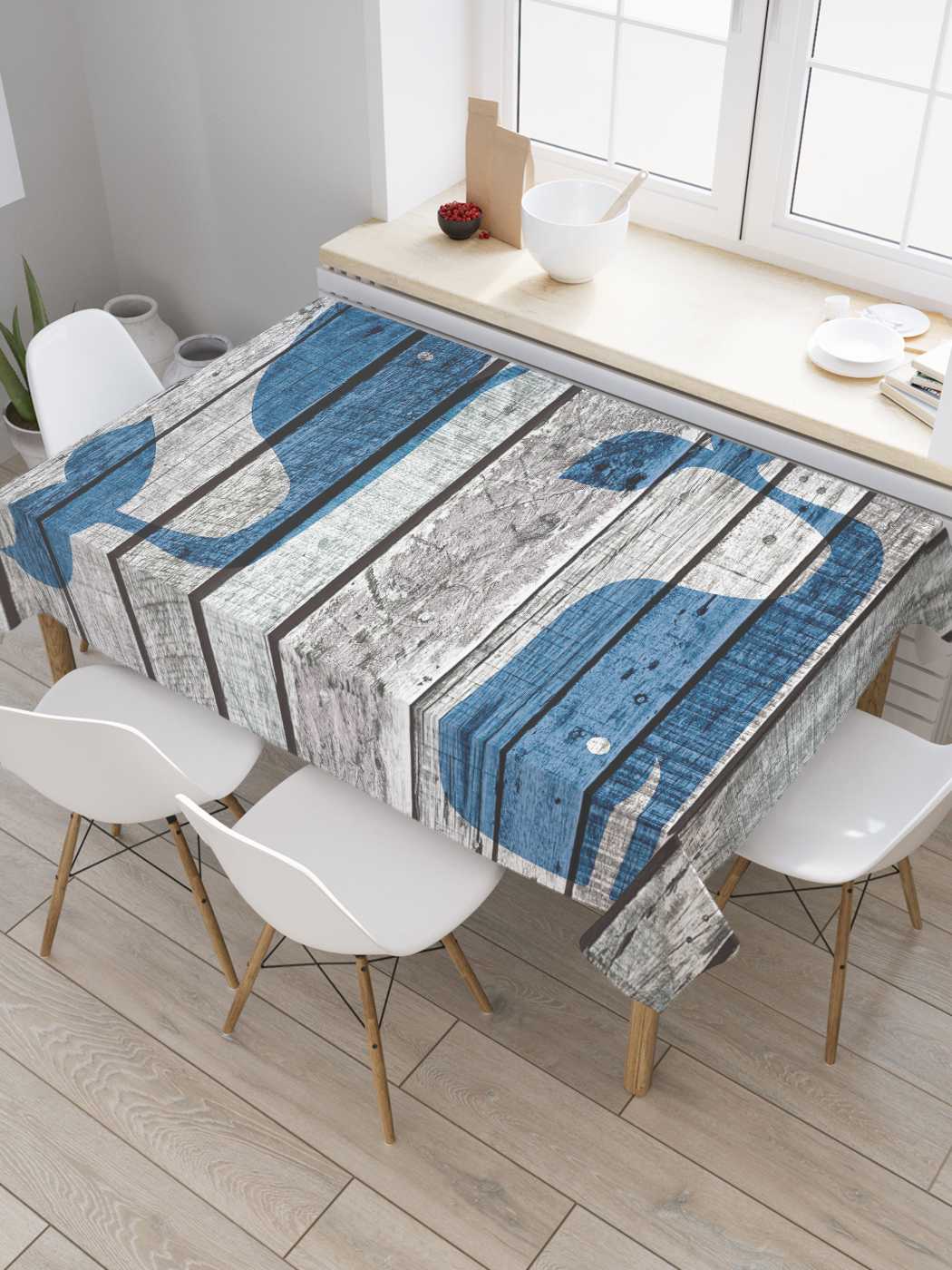 Скатерть прямоугольная JoyArty "Киты на фоне досок" из оксфорда, 180x145 см, Серый, Киты на фоне досок