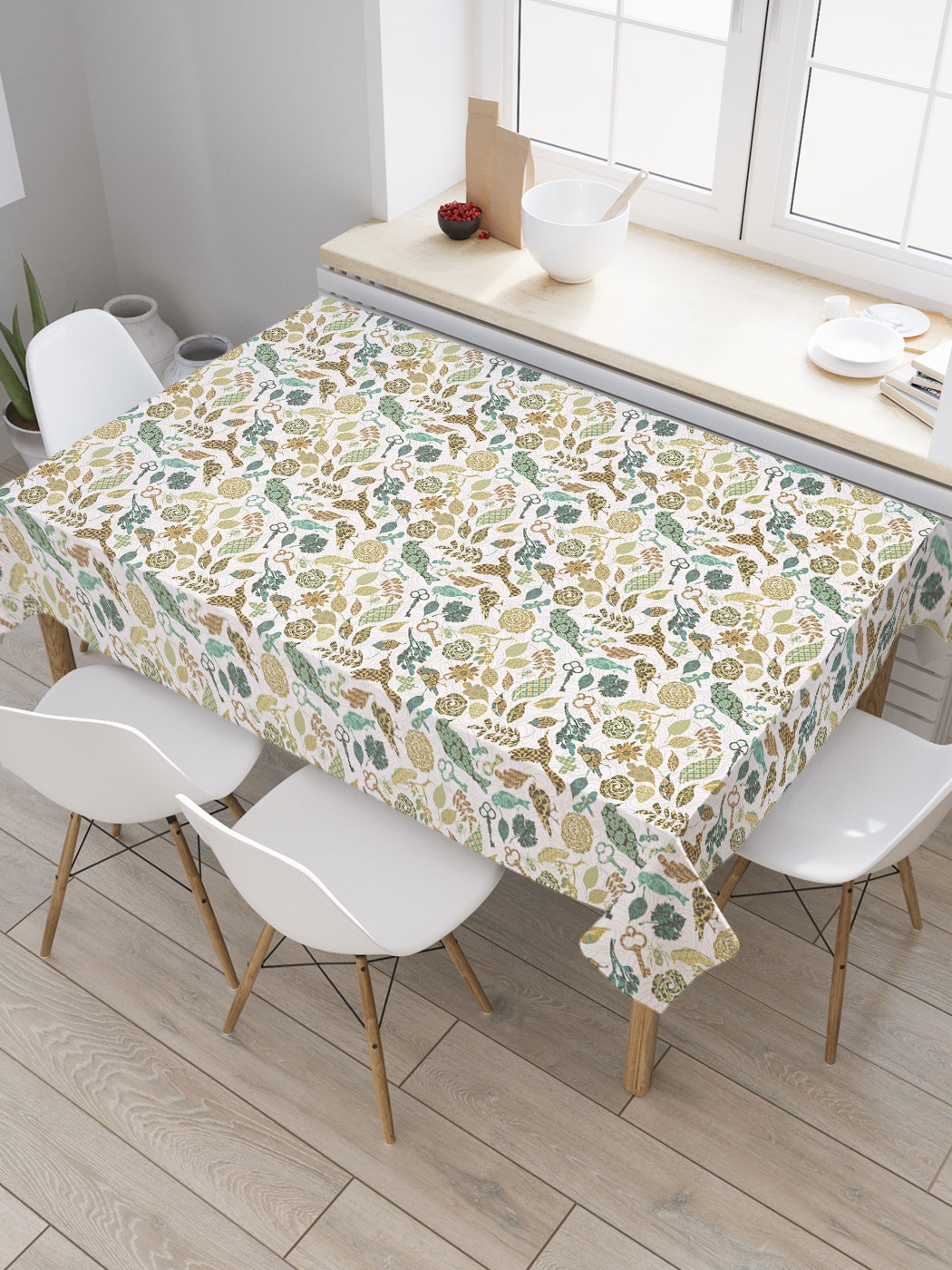 Скатерть прямоугольная JoyArty "Орнаментальные птицы" из сатена, 180x145 см, Зеленый, Орнаментальные птицы