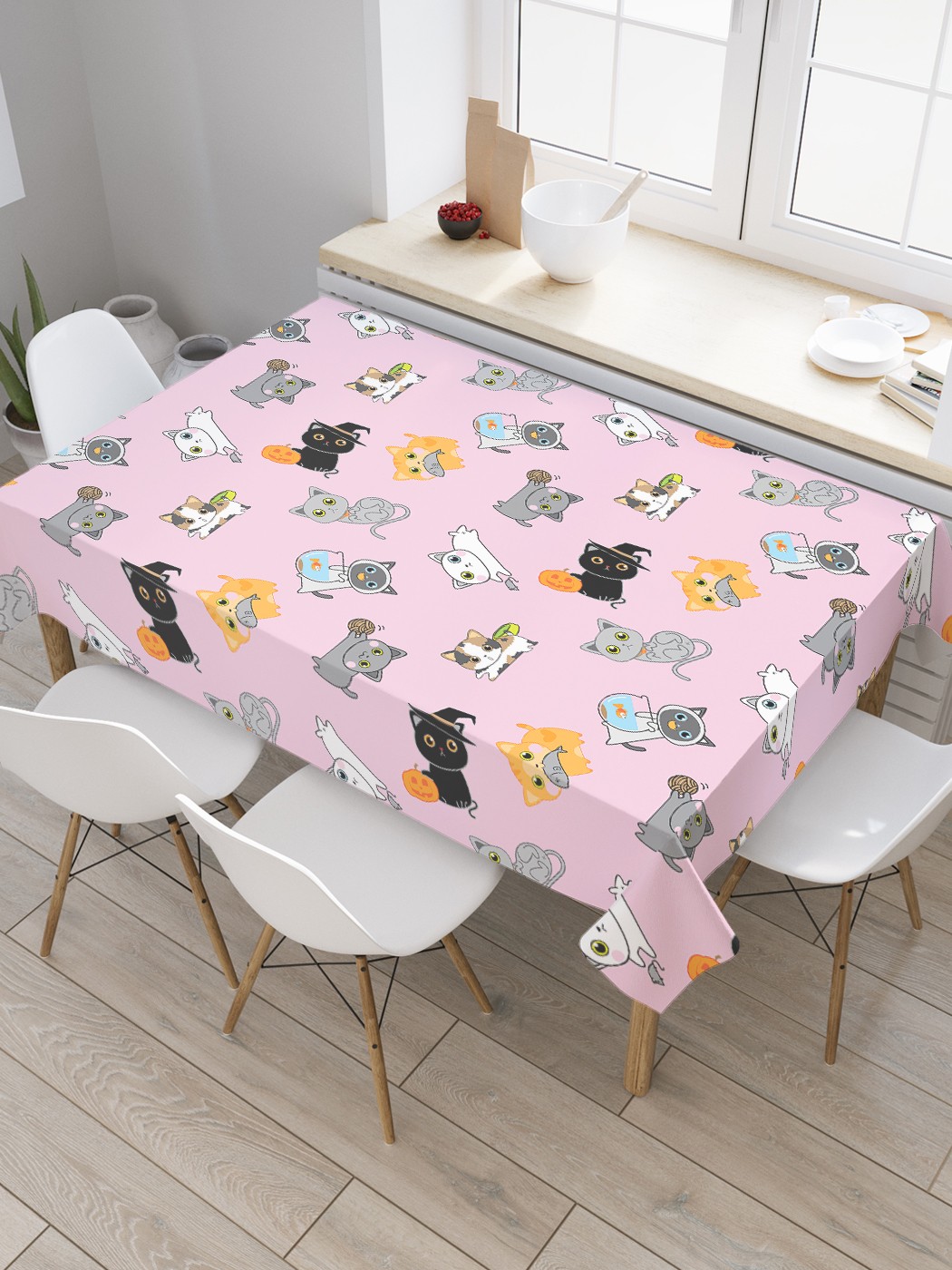 Скатерть прямоугольная JoyArty "Разнообразная жизнь котов" из сатена, 180x145 см, Розовый, Разнообразная жизнь котов