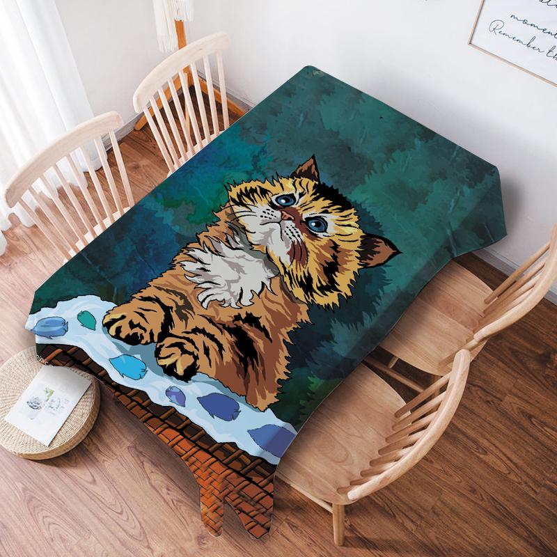 Скатерть с изображением милого кота, картина маслом, водонепроницаемая/необрастающая, свадебное украшение, коврик для стола, студенческая скатерть для общежития, скатерть