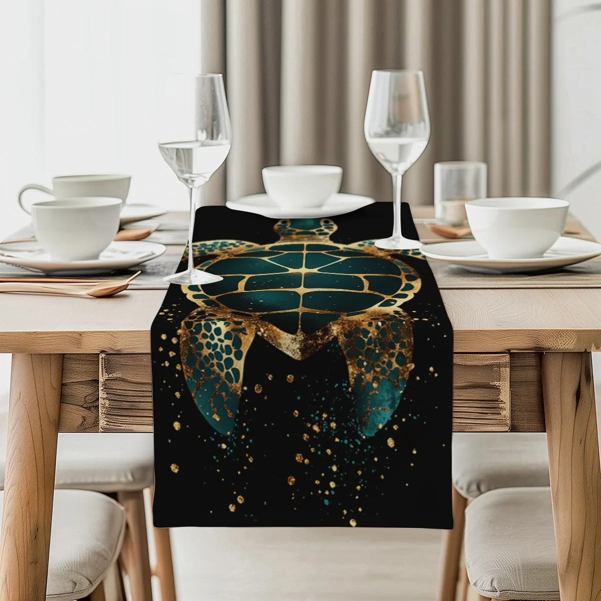 Скатерть с принтом Золотая и бирюзовая ракушка черепахи Роскошная скатерть с принтом для сезонных торжеств Обеденная в помещении и на открытом воздухе S