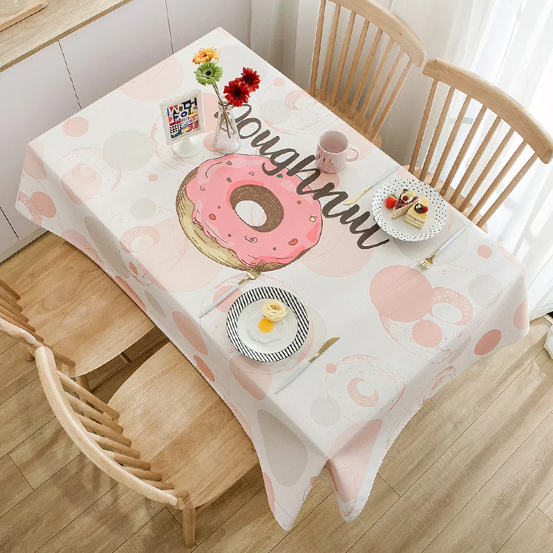 Скатерть с рисунком Ice сливочный пончик розовая кавайная Скатерть льняная ткань для пикника на открытом воздухе для вечерние