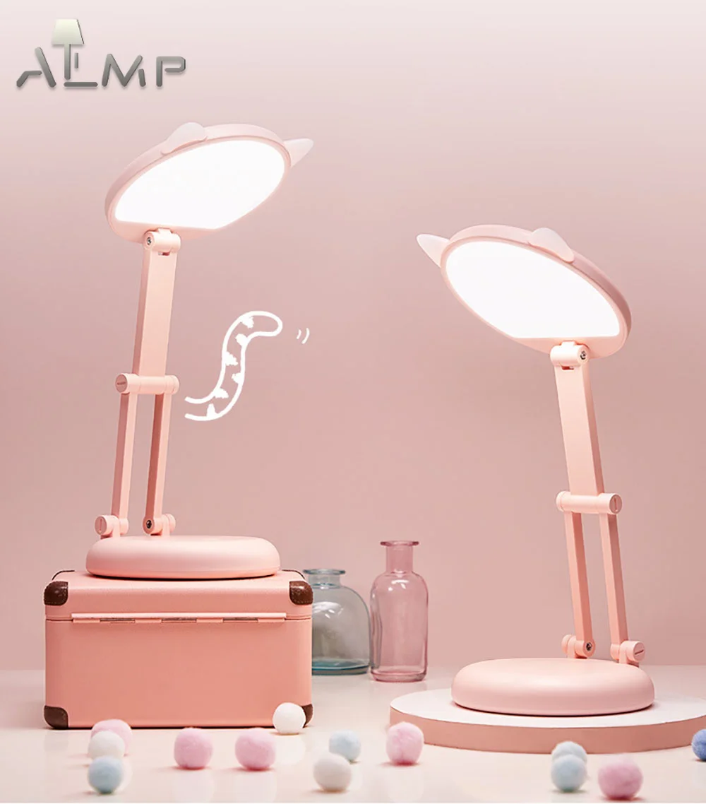 Складная Светодиодная настольная лампа с кошачьими ушами, милый светильник для защиты глаз, с длительным сроком службы батареи, умная лампа...