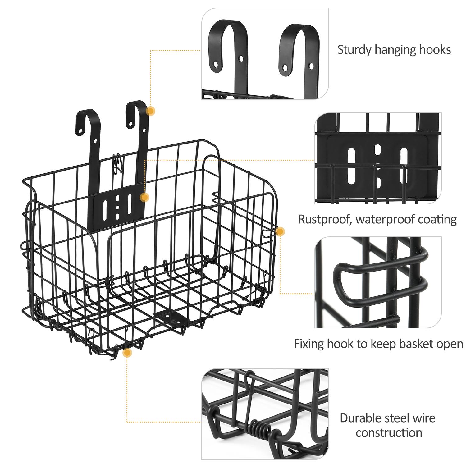 Складная велосипедная корзина Съемная корзина из стальной проволоки на руль велосипеда Передняя корзина Велосипедная задняя багажная корзина Подвесная корзина Велосипедный груз чёрный