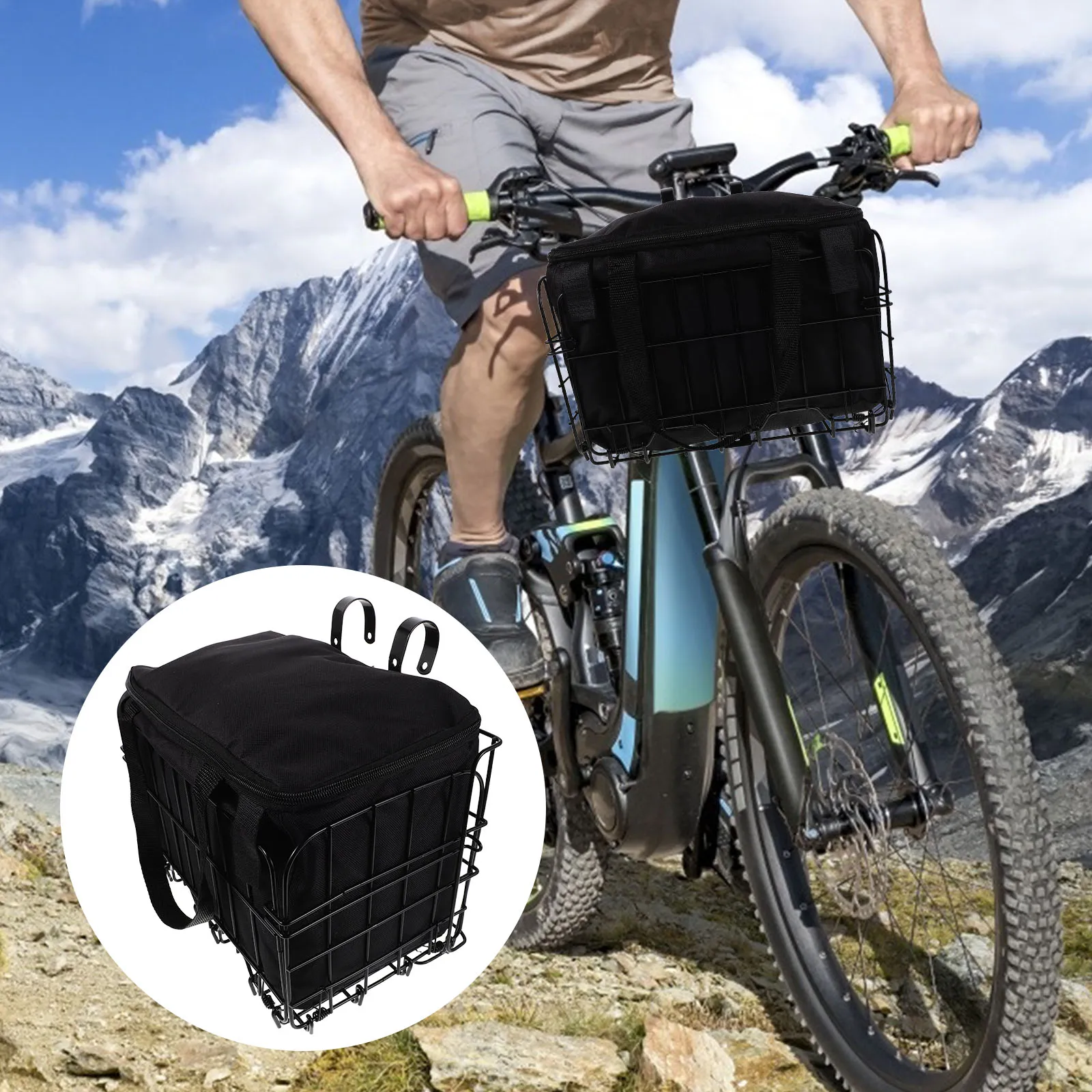 Складная велосипедная корзина большой емкости, съемная сумка для хранения для горных дорог, электронных велосипедов, задняя передняя грузовая сумка для хранения, черная металлическая ткань