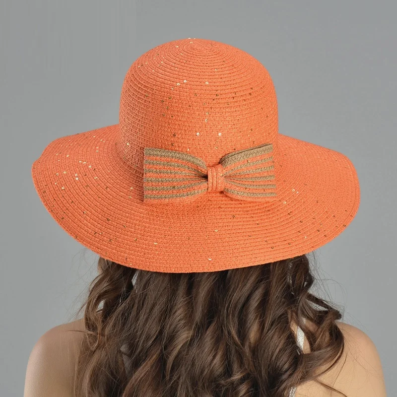 Складная женская летняя соломенная Солнцезащитная шляпа с широкими полями, шляпа с широкими полями, новый дизайн, Украшение бантом, Солнцез...