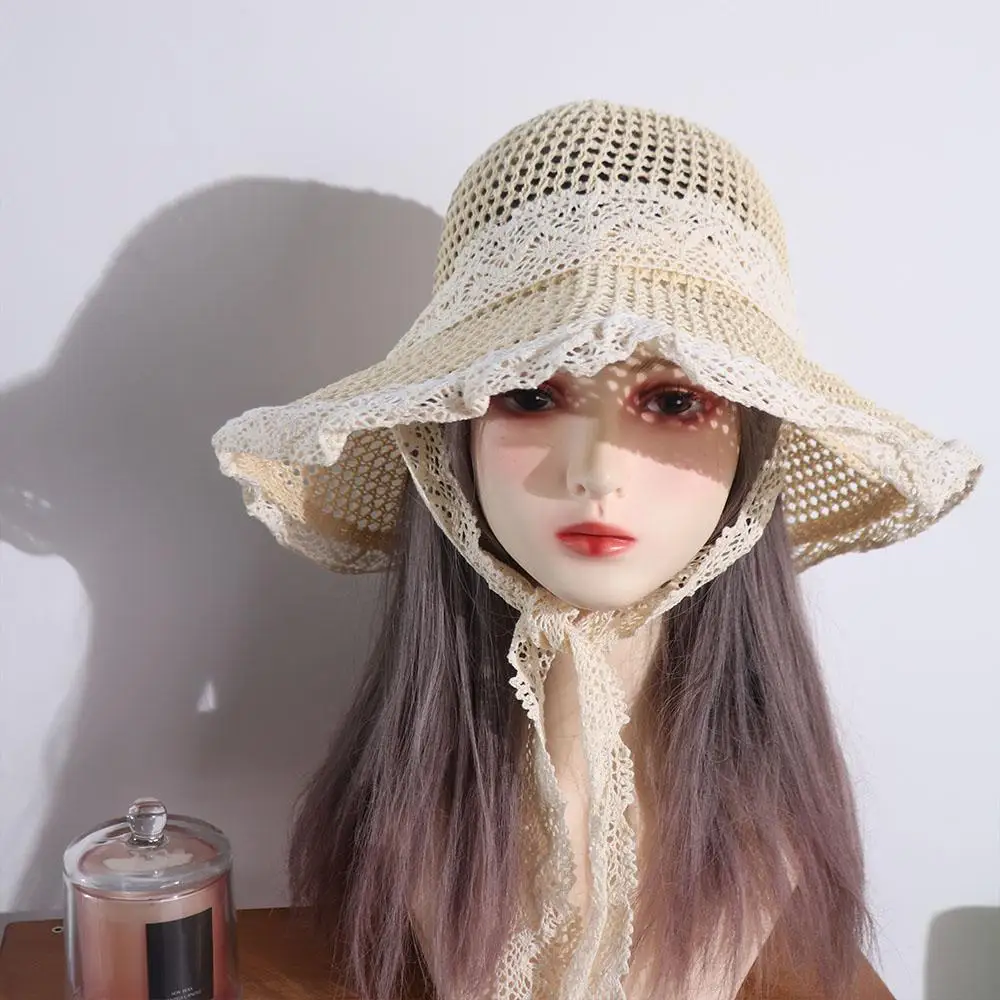 Складная женская соломенная шляпа в пасторальном стиле, кружевная весенне-летняя шляпа от солнца с большими полями, дорожная пляжная кепка с защитой от ультрафиолета, женская