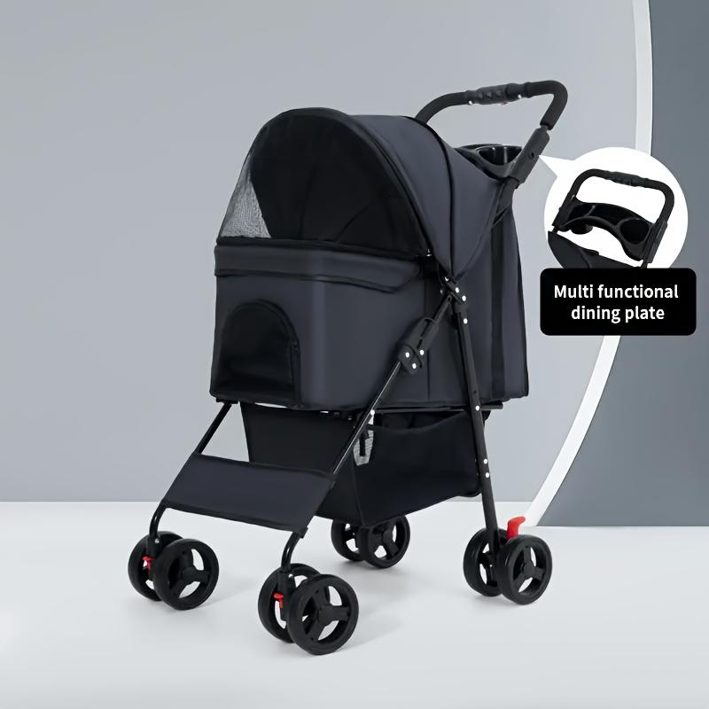 Складная коляска для кошек и собак, 4-колесная переноска, прогулочная тележка с чехлом от непогоды, корзина для хранения, подстаканник для щенка чёрный