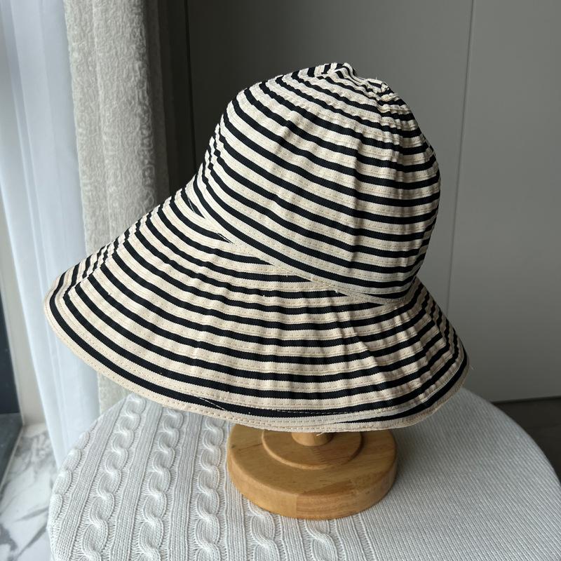 Складная летняя полосатая шляпа-ведро, женская новая длинная солнцезащитная шляпа, модная шляпа-тазик, большая окружность головы, шляпа от солнца L(58-60cm) бежевый