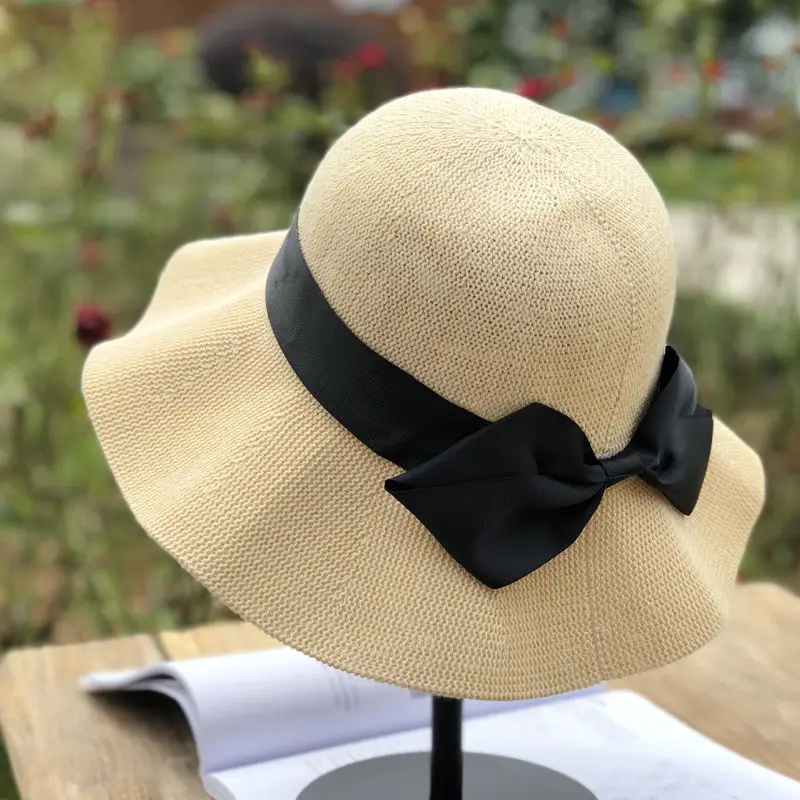 Складная регулируемая женская соломенная шляпа, летняя пляжная шляпа от солнца с бантом, дорожная Кепка с защитой от УФ лучей, уличная Женск...