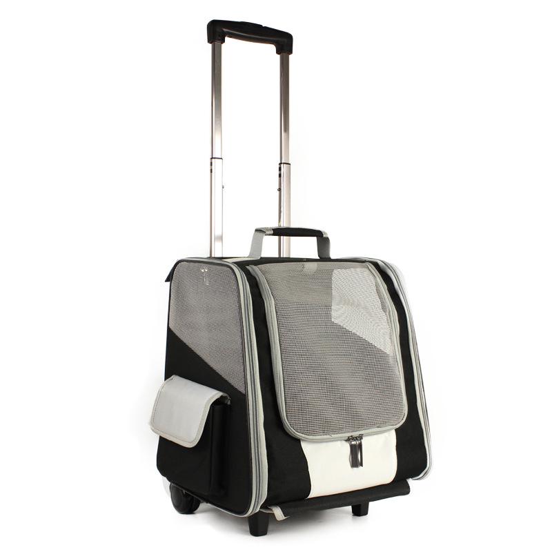 Складная сумка для питомца, рюкзак для собак, рюкзак для прогулок, ящик для кошек, чемодан на колесиках, переносная сумка для кошек с двумя колесами чёрный