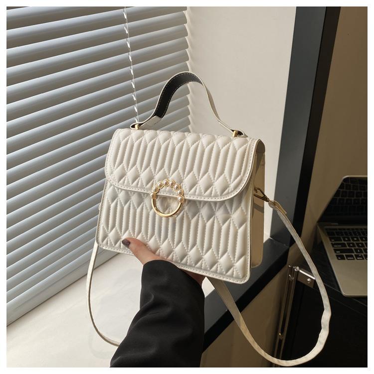 Складная сумка женская модная маленькая квадратная сумка 2024 летняя тисненая клетчатая сумка иностранная текстура ретро сумка-мессенджер белый
