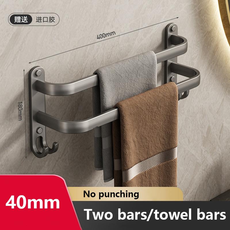 Складной держатель для полотенец с крючком, аксессуары для ванной комнаты, настенное крепление, вешалка для душа, алюминиевая штанга, матовая серая полка 40-60 см double 40mm