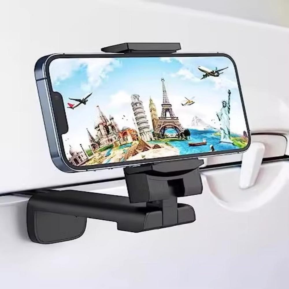 Складной держатель для телефона в самолет Портативная дорожная подставка Настольная подставка для полета Регулируемая Вращающаяся Подставка для селфи Держатель для телефона на сиденье поезда чёрный