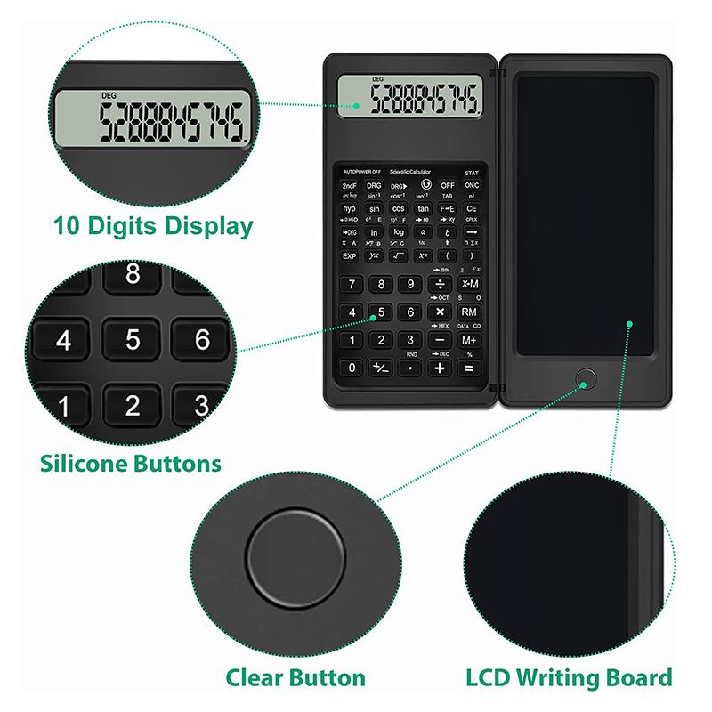 Складной научный калькулятор с ЖК-блокнотом и функциями ручки чёрный
