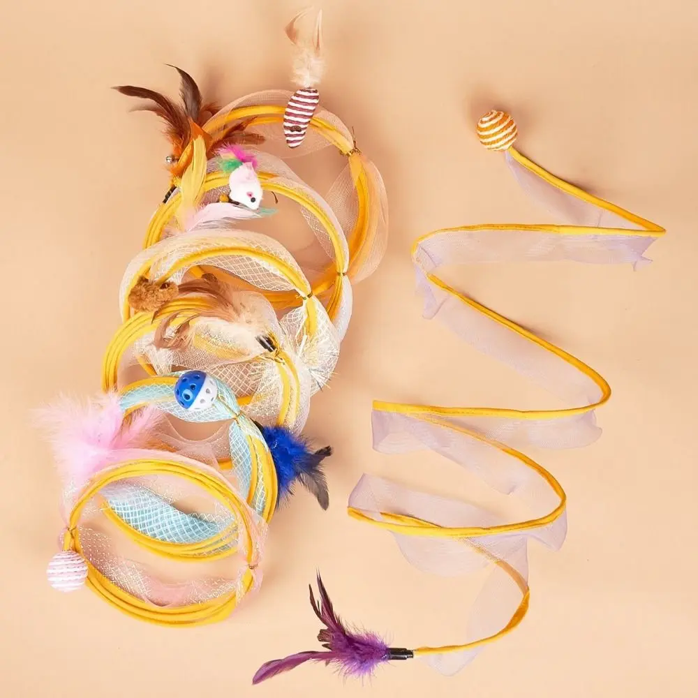 Складной спиральный туннель для кошек, портативная с плюшевой мышью, тоннель для кошек в помещении