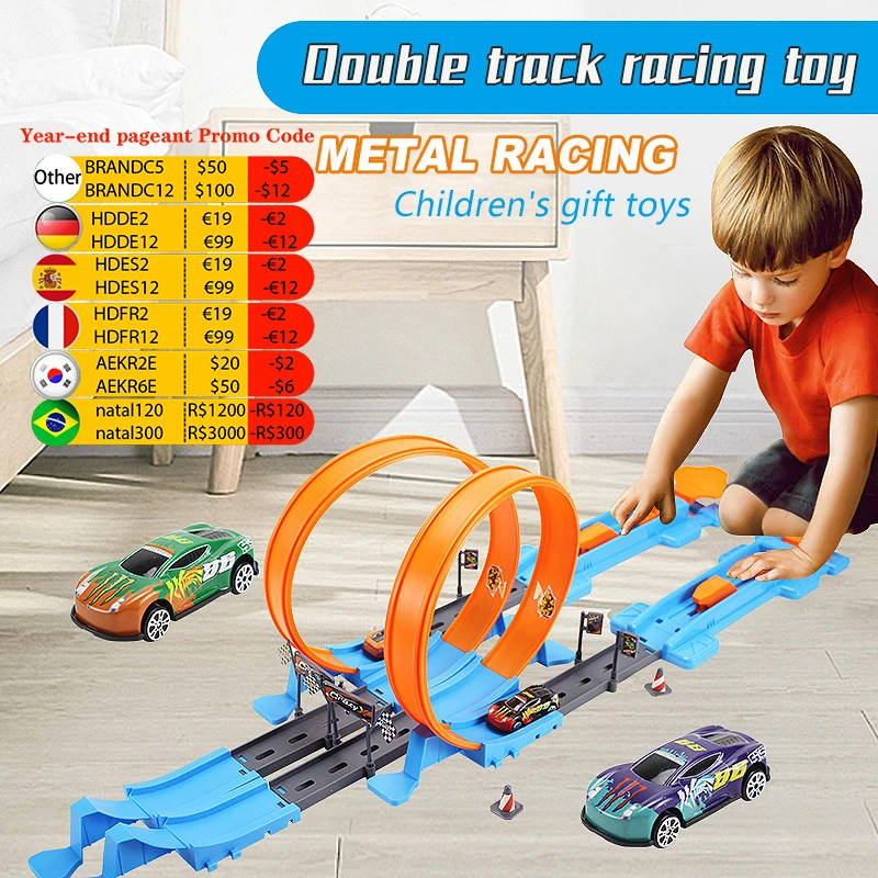 Скоростная Двойная модель автомобиля для трюков, гоночный трек «сделай сам», сборные рельсовые комплекты, катапульта, рельсовый автомобиль...