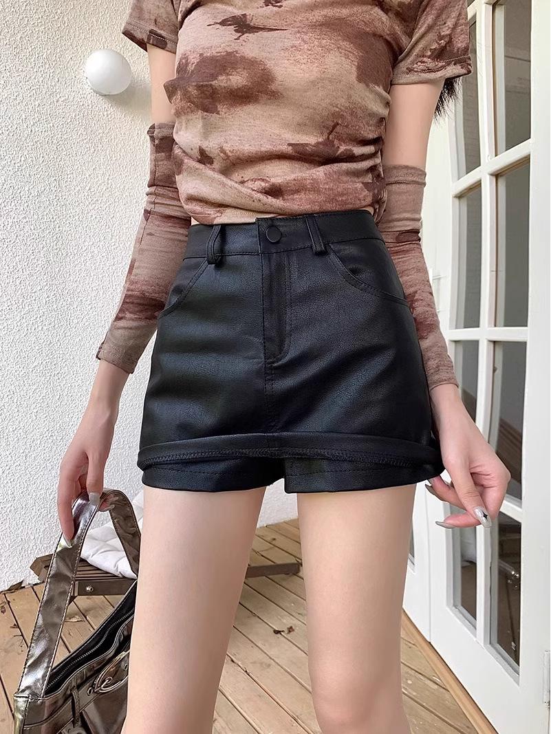Сладкая и крутая мини-юбка А-силуэта с завышенной талией из ПУ кожи - XS Весенняя коллекция XL