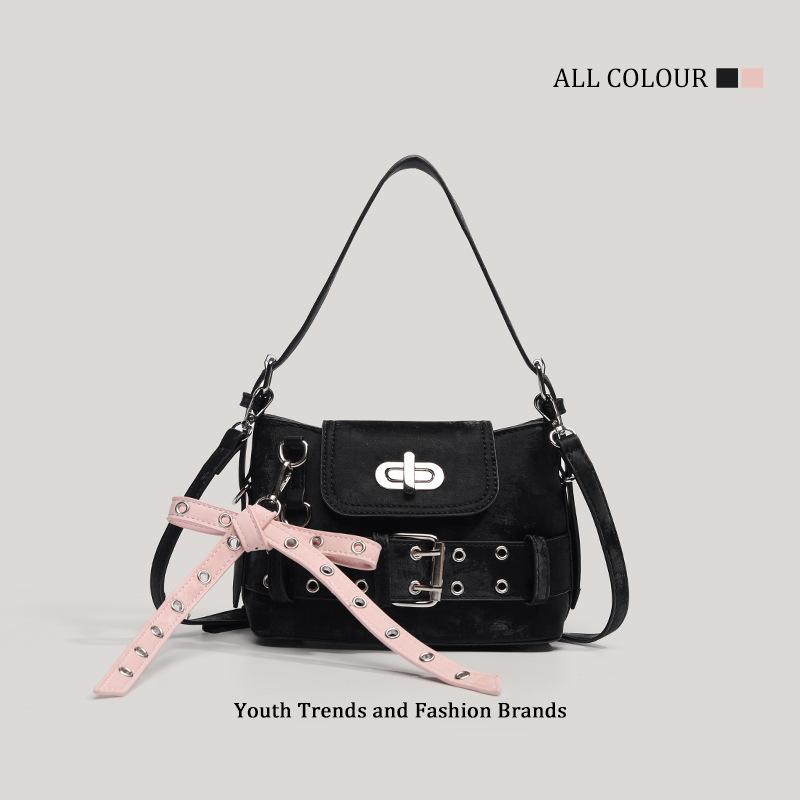 Сладкая и милая девичья сумка под плечо и подмышку Новая универсальная сумка для поездок на работу Модная сумка-локомотив с заклепками чёрный
