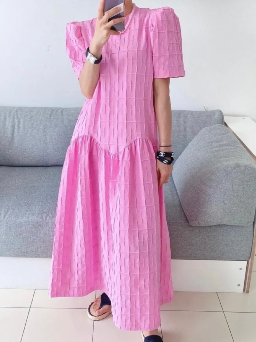 Сладкая розовая текстурированная ткань Dr, женская лето 2022, новая нежная лесная система, Интернет-знаменитости, детское длинное платье