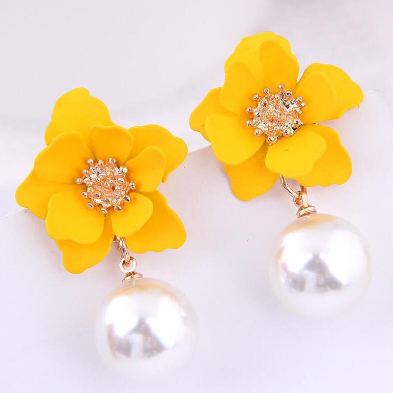 Сладкие Симпатичные Двухслойные Цветочные Жемчужные Серьги для Дамы Личность Преувеличенные Женщины Цветочные Серьги Модные Украшения