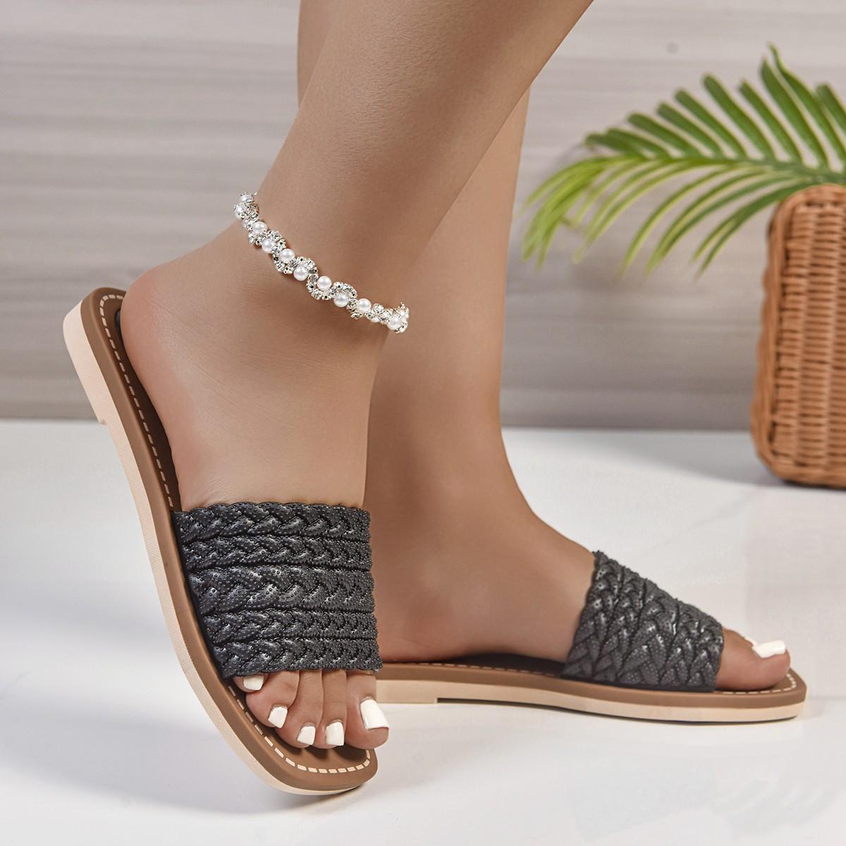 Сладкие модные тапочки женские шлепанцы пляжные на плоской подошве на низком каблуке обувь для женщин однотонные кожаные туфли на платформе летняя обувь больших размеров 37 чёрный