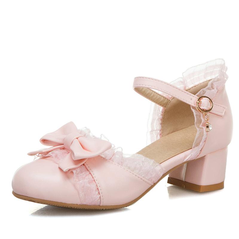 Сладкие туфли для танцев в стиле японской лолиты-принцессы, милые летние туфли с бантами для девочек, туфли-лодочки для колледжа с круглым носком, белые, розовые, женские сандалии 39 розовый