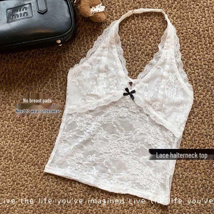 Сладкое и пикантное мини-платье с кружевным халтером - Прозрачное, Облегающее, А-силуэт, Модный осенний маст-хэв M 95-105 jin