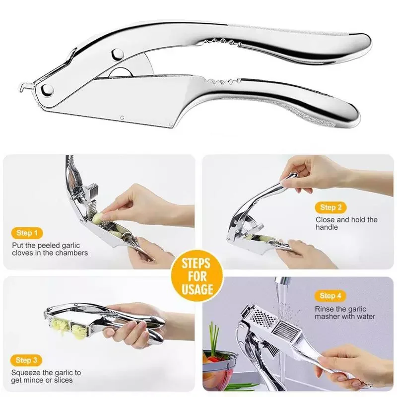 Слайсер из нержавеющей стали для чеснока 2 в 1, прижимная машинка для чеснока, измельчитель чеснока и удобная ломтерезка, измельчитель для че...