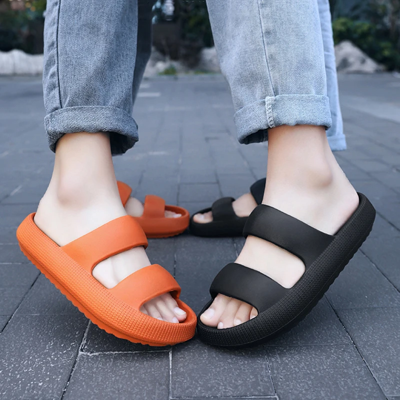 Сланцы женские на платформе, пляжные шлепанцы на толстой нескользящей подошве, с двумя ремешками, летняя модель 2022