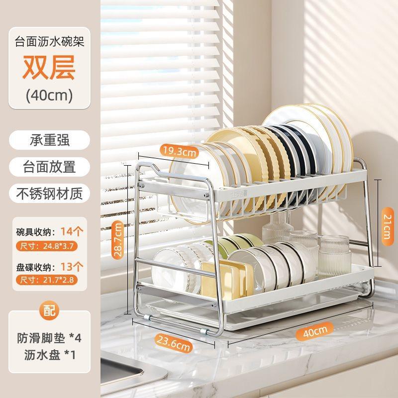 Сливная полка для кухонных мисок, бытовая настольная полка для хранения, многофункциональный двухслойный ящик для хранения тарелок, ящик для хранения палочек для еды