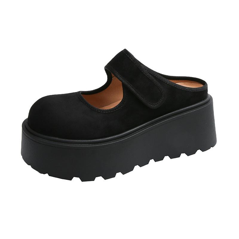 Слипоны на липучке, полутапочки, весна 2025, новинка, ретро, универсальные, для маленького человека, увеличение роста, толстая подошва, верхняя одежда, одинарная обувь 41 чёрный