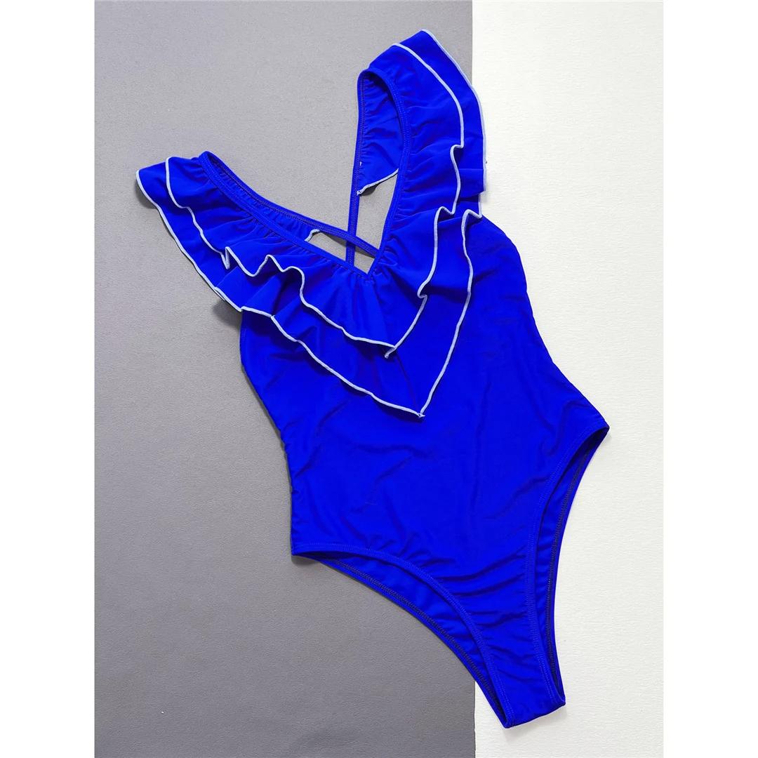 Слитный купальник с V-образным вырезом и перекрестной спинкой, женский купальник-монокини с высоким вырезом по ноге, купальный костюм для плавания L синий
