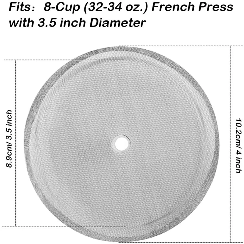 Сменные фильтры для Френч-пресса, сетчатые фильтры для кофейных прессов, с металлическим центральным кольцом, многоразовые, из нержавеющей стали